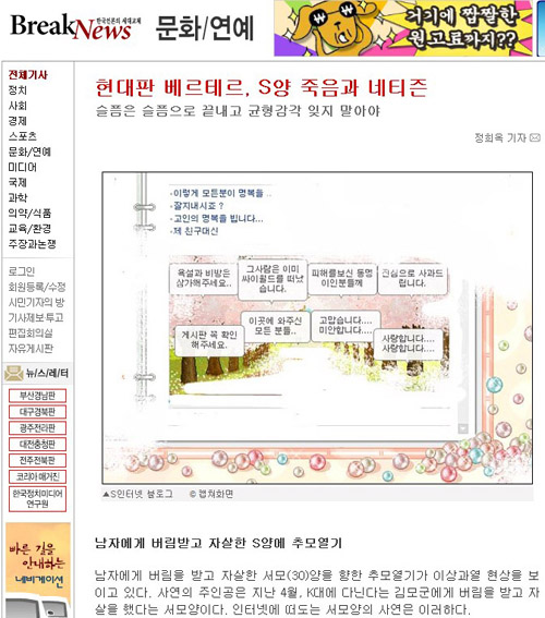 포털 댓글 소송을 이끌었던 변모씨(포털 피해자를 위한 모임 대표)가 2005년 당시 편집국장으로 있었던 브레이크뉴스의 기사도 인상적입니다.